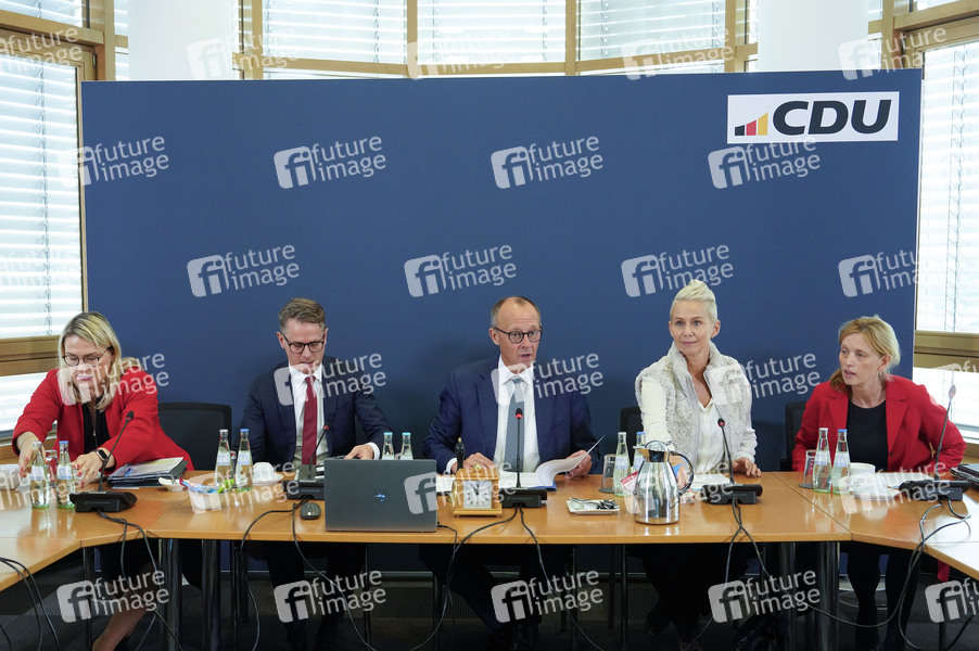 Christina Stumpp, Carsten Linnemann, Friedrich Merz, Silvia Breher und Karin Prien bei der Bundesvorstandssitzung der CDU im Konrad-Adenauer-Haus. Berlin, 04.11.2024