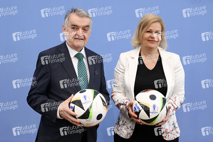 Herbert Reul und Nancy Faeser bei der Bundespressekonferenz 10 Tage vor der EM: Vorbereitung von Bund und Ländern für Sicherheit und Zusammenhalt im Haus der Bundespressekonferenz. Berlin, 04.06.2024