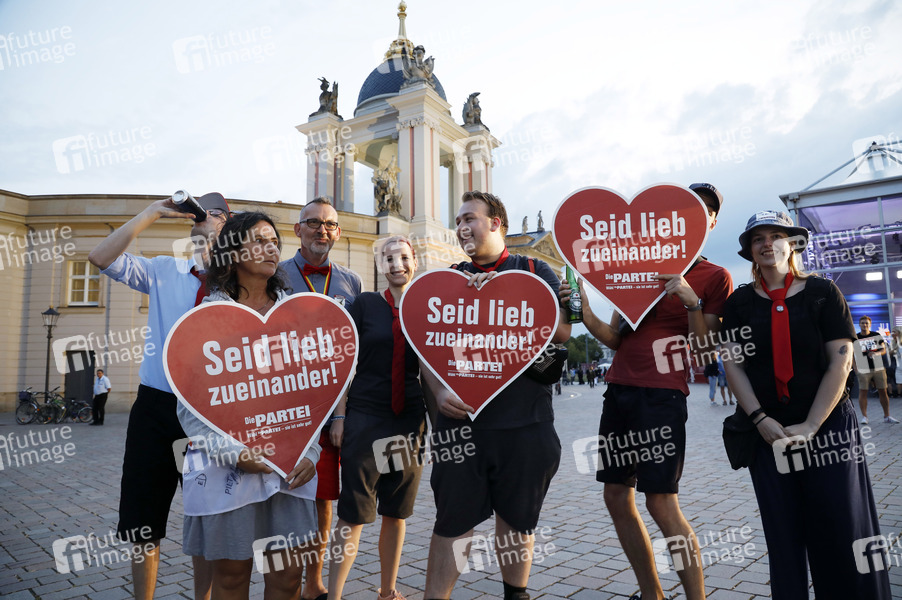 Die Partei Mitglieder vor dem Landtag nach der Landtagswahl in Brandenburg. Potsdam, 01.09.2019