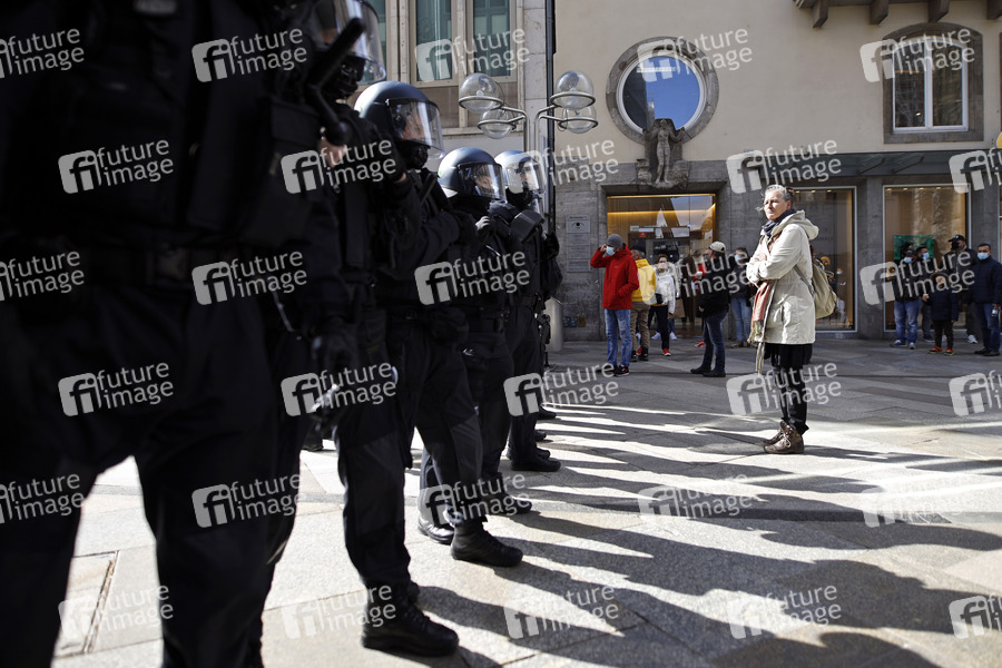 Demo, Demonstration, Coronaleugner, Corona-Diktatur, Coronaskeptiker, Corona-Skeptiker, Querdenken, Verschwörungstheoretiker, Infektionsschutzgesetz, Impfgegner, Virus, Coronavirus, Corona-Regeln, Corona-Maßnahmen, Coronamaßnahmen, Versammlungsfreiheit, Grundrechte, Freiheitsrechte, Demonstrationsrecht, Versammlungsrecht, Grundrechtseinschränkungen, Corona-Kontrolle, Corona-Kontrollen, Maskenpflicht, Mindestabstand, Bereitschaftsdienst, Bereitschaftspolizei, Corona-Kontrolle, Corona-Kontrollen, Einsatz, Einsatzbelastung, Einsatzhundertschaft, Exekutive, Gewaltmonopol, Innenpolitik, Innere Sicherheit, Landespolizei, Ordnungshüter, Personenkontrolle, Polizeiaufgebot, Polizeibeamte, Polizeibeamter, Polizeidienst, Polizeieinsatz, Polizei-Einsatz, Polizei-Hundertschaft, Polizeikräfte, Polizeimaßnahme, Polizei-Maßnahme, Polizei-Meldung, Polizeiaufgebot, Polizeipräsenz, Polizist, Polizisten, Polizistin, Sicherheit, Sicherheitsmaßnahmen, Corona-Kontrolle, Corona-Kontrollen, Großeinsatz, Corona-Politik