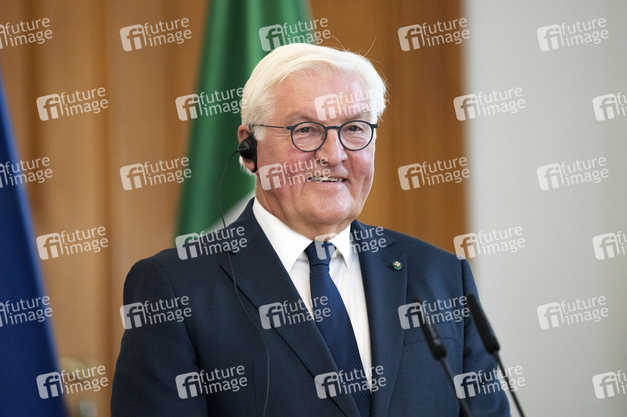 Frank-Walter Steinmeier beim Empfang des italienischen Staatspräsidenten mit militärischen Ehren im Schloss Bellevue. Berlin, 27.09.2024