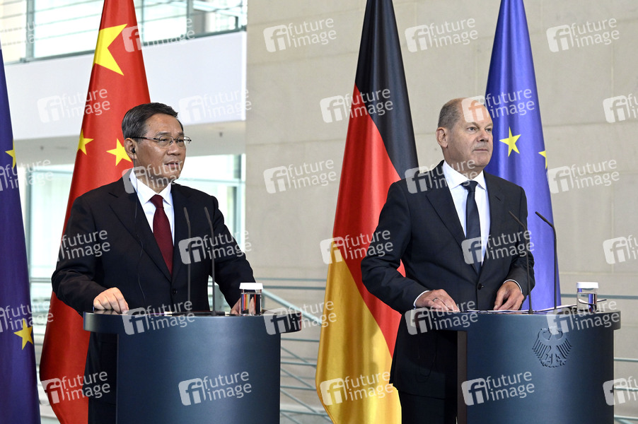 Li Qiang und Olaf Scholz bei der Pressekonferenz zu den 7. Deutsch-Chinesischen Regierungskonsultationen unter dem Titel 'Gemeinsam nachhaltig handeln' im Bundeskanzleramt. Berlin, 20.06.2023