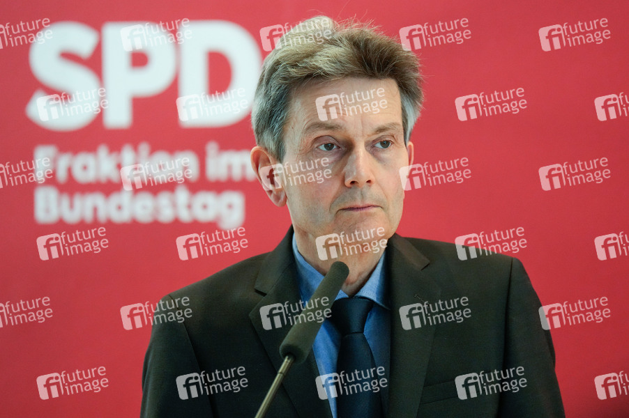 Politik, Statement, Pressekonferenz, PK, Reichstag, Deutscher Bundestag, Demokratie, Parlament, Parlamentsgebäude, Volksvertreter, MdB, Mitglied des Bundestages, Abgeordneter, Politiker, SPD, Fraktionsvorsitzender SPD-Bundestagsfraktion