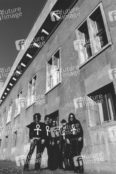 The 69 Eyes (Archzie, Bazie, Jyrki 69, Jussi 69, Timo-Timo) bei einem Photoshooting. Berlin, 12.05.2001