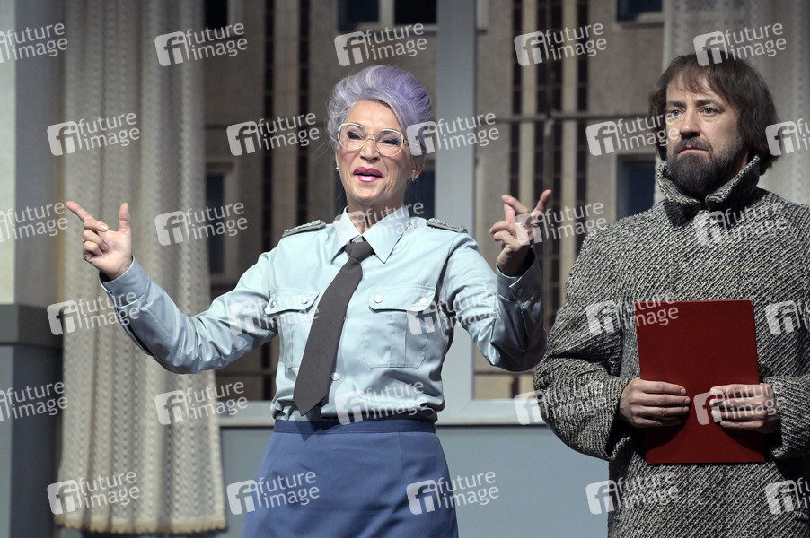 Caroline Beil und Bürger Lars Dietrich bei der Fotoprobe zum Theaterstück 'Stasi, Stress und Stolperfallen' im Schlosspark Theater. Berlin, 04.09.2024