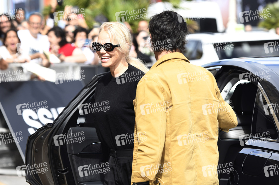 Pamela Anderson bei der Ankunft am Hotel Maria Cristina auf dem 72. Internationalen Filmfestival San Sebastian / Festival Internacional de Cine de San Sebastián. San Sebastian, 25.09.2024