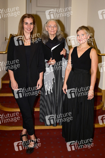 Aleksandra Borodulina, Blanche Kommerell und Liga Jankovska bei der Lesung 'Clara Wieck Schumann - Das Konzertieren ist die Luft, in der ich atme' im Foyer-Café im Gerhart Hauptmann-Theater. Görlitz, 27.09.2024