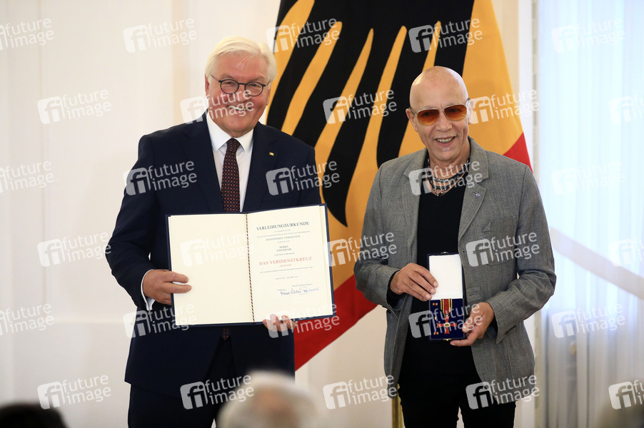 Frank-Walter Steinmeier und Toni Krahl bei der Verleihung des Verdienstkreuzes am Bande der Bundesrepublik Deutschland an Toni Krahl im Schloss Bellevue. Berlin, 01.10.2024