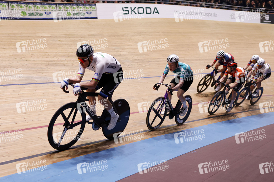 Theo Reinhardt (GER) an der Spitze vom Punktefahren beim Sixdays Weekend 2025 im Velodrom. Berlin, 01.02.2025