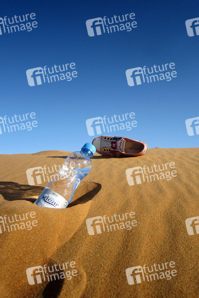 Reise, Urlaub, Sightseeing, Kultur, Sehenswürdigkeit, Wüste, Sand, Schuh, Wasserklasche, Mineralwasser