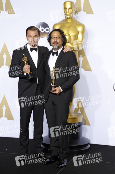 Leonardo DiCaprio und Alejandro Gonzalez Inarritu (Bester Hauptdarsteller und Beste Regie 'The Revenant - Der Rückkehrer') im Presseraum der Oscar Verleihung 2016 / 88th Academy Awards im Loews Hollywood Hotel. Los Angeles, 28.02.2016)