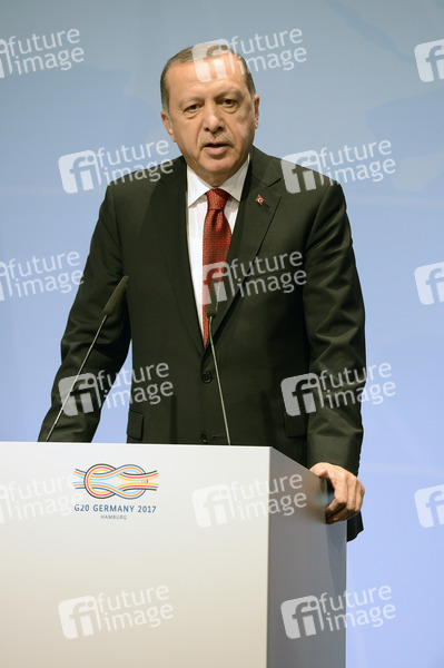 Recep Tayyip Erdogan bei einer Pressekonferenz auf dem G20-Gipfel. Hamburg, 08.07.2017