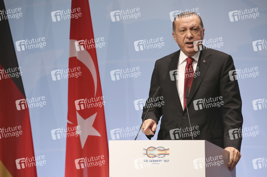 Recep Tayyip Erdogan bei einer Pressekonferenz auf dem G20-Gipfel. Hamburg, 08.07.2017