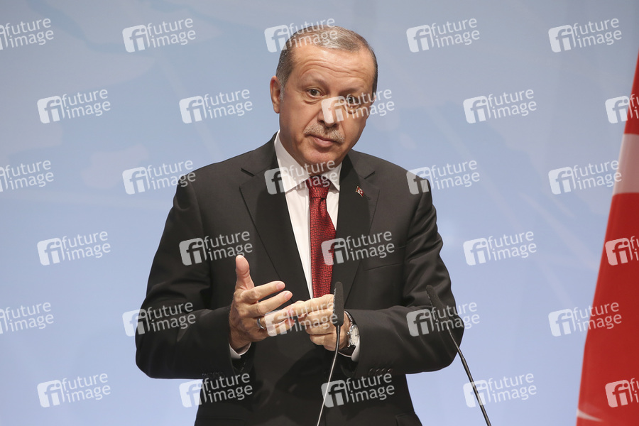 Recep Tayyip Erdogan bei einer Pressekonferenz auf dem G20-Gipfel. Hamburg, 08.07.2017